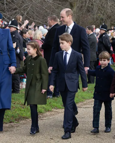 Kate Middleton sweetly held Princess Charlotte's hand as they walked to Christmas Day church service in Sandringham. Prince George walked beside Charlotte, while Prince Louis held onto Prince William's hand.