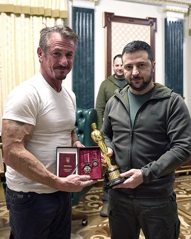 Ukrainian President Volodymyr Zelenskyy meets with the Hollywood actor and philanthropist Sean Penn, during a visit to the Ukrainian capital of Kyiv, Ukraine, on November 8, 2022. Penn gifted Zelenskyy with one of his personal Oscar statuettes, saying, "When you win, bring it back to Malibu." Photo via Ukrainian Presidential Press Office/UPIHollywood Celebrity Sean Penn Meets with Ukrainian President Zelenskyy in Kyiv, Ukraine – 08 Nov 2022