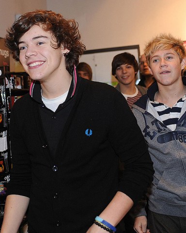 X-Factor 2010.X Factor's One Direction members Harry Styles (left) and Niall Horan arrive for an autograph signing session at the HMV store, Bradford. Picture date: Monday December 6, 2010. Photo credit should read: Anna Gowthorpe/PA Wire URN:9880410 (Press Association via AP Images)