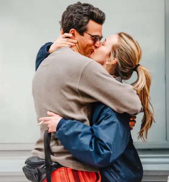 Paul Anthony Kelly and Sarah Pidgeon are seen on the set of “American Love Story” on August 29, 2025 in New York City. (Photo by XNY/Star Max/GC Images)