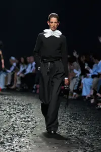 Culottes remain a favourite: ample and reaching mid-calf, they merge comfort with grace. For transitional weather, they can be styled with a jacket and tall boots in a chocolate tone – as advocated by Elie Saab.