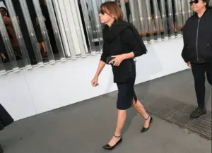 Gucci demonstrates that the creamy yellow shade endures. Conversely, it contrasts flawlessly with scarlet shoes. Such a partnership exudes sophistication and currentness.