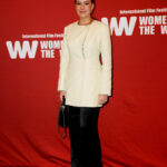 The High Low podcast host spiced up her fall look with gold hoop earrings and black sunglasses. As for her glam, the 32-year-old rocked minimal makeup and a glossy pink lip. Her brunette tresses were worn straight down with a center part, which allowed for her dress to be the star of the show at the event.
