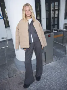 Cream offers a superb substitute for white, beautifully embodying the “quiet luxury” concept. While Elsa Hosk favors vibrant combinations, on this occasion, she opted for an all-cream ensemble. On her Instagram, the model presented an outfit featuring a woollen top and a sweeping skirt, enhanced with a high-necked jacket. Moccasins and a complementing purse finalized the look.