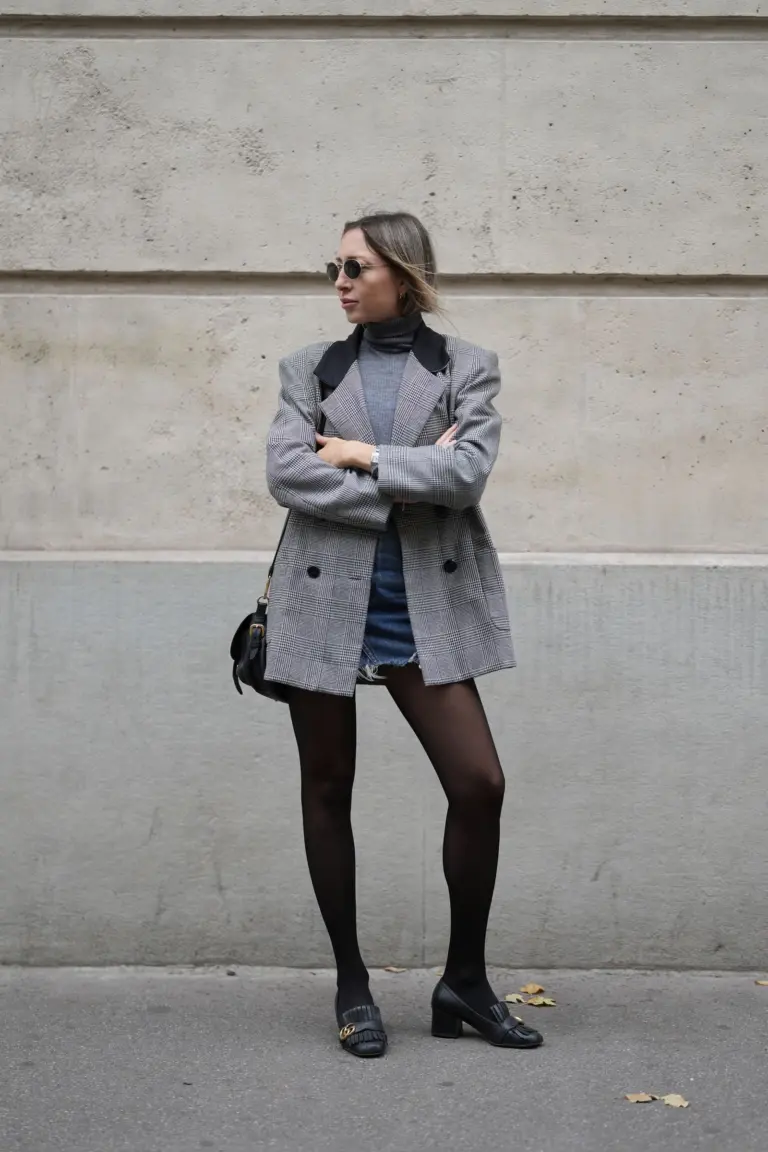 Chanel brings back the French girl aesthetic with pearl-colored, pleated, high-waisted slacks. The key to sophistication lies in a monochromatic appearance with a double-breasted top, a pearl-adorned belt, and trendy two-tone slingbacks.