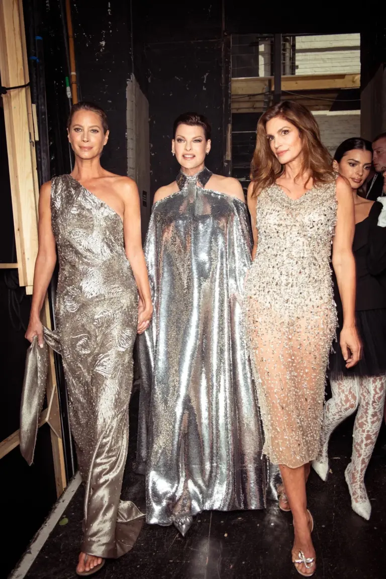 Kim stole the show at the runway event when she wore the poofy off-the-shoulder gown that had a low-cut neckline, revealing ample cleavage. The dress was cinched around her tiny waist with a rope belt and was slit on the front revealing her incredibly toned legs. She accessorized her class look with a pair of clear PVC pointed-toe heels and a massive diamond and purple necklace.