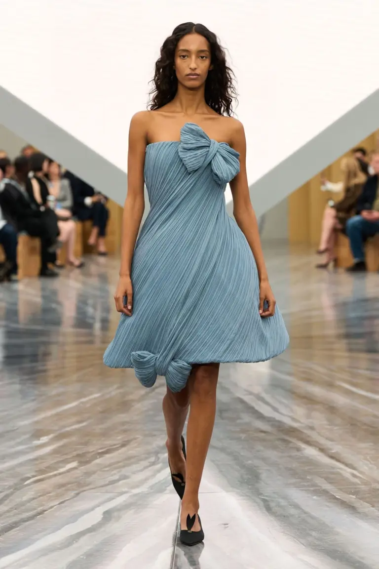 Meg’s short blonde bob is styled in loose waves. She tops her stunning look off with a bold red lip and a pair of glasses.