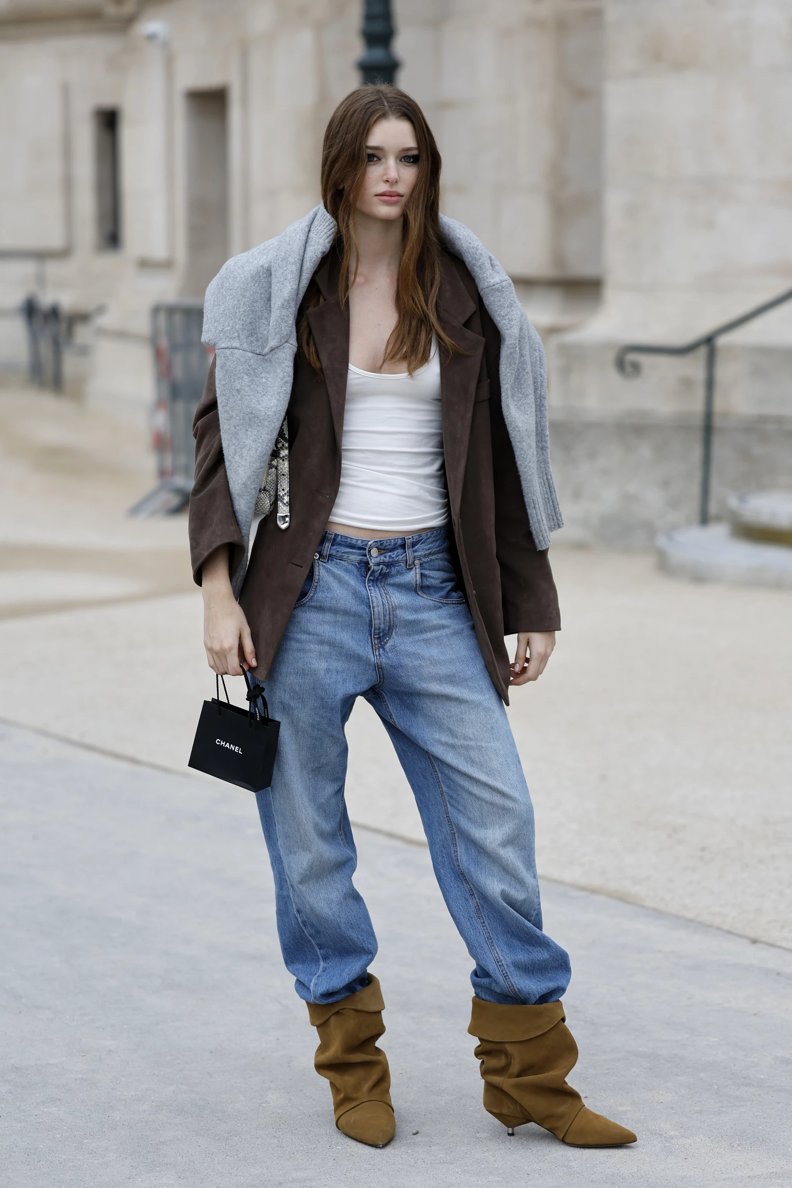 This season, the pairing of tall boots and denim is emerging as a leading autumn trend amongst style aficionados in Paris, Copenhagen, and New York. This straightforward yet impactful styling choice lets you put together a casual ensemble blending elegance, ease, and usefulness. Vogue.ua has compiled the most fashionable looks from street-style influencers and discovered the best ways to tuck jeans into boots for a trendy fall appearance.