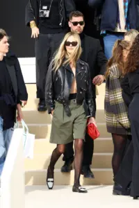 This fashion is also prominently visible away from the runway. On the broadcast “The Traitors”, TV personality Claudia Winkleman recently donned a gray pleated Prada skirt, which she accented with a substantial belt and a sweater. The look was masterminded by stylist Sinead McCaffrey. The gray wool skirt, as featured in her selection, conveyed a simultaneous air of femininity, practicality and streamlined modernity.