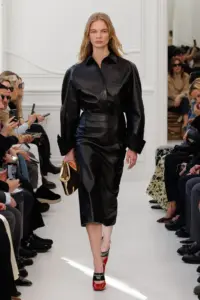 This season, career women always wear trendy pumps detailed with metallic toes, blending sophistication, intrigue, and a captivating gleam. Styles like this have been featured at Saint Laurent and Prada, and while they often serve for evening events, they are just as effective when worn during the day with a trouser suit and jacket. Opt for a satin material – it will contribute a subtle shine and elevate the office attire.