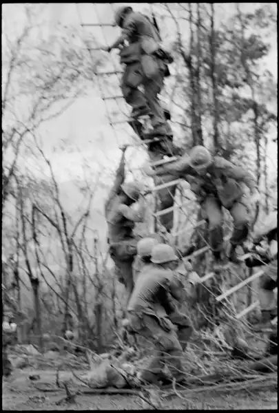 Soldiers on a helicopter ladder, during Operation Thayer II, mid-February, 1967.