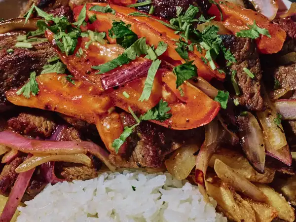 The cuisine, as well, contributes some clever re-conceptualization. Kam lu wantan, for example, is a quintessential chifa creation of flash-fried dumplings that are merged in a sugar-and-vinegar dressing containing meat and produce. At Johnny’s, they surface with all of the customary elements in a radically altered sequence. Only the dumplings contain meat, which remain flash-fried (perhaps a hair more than necessary), displayed in a stylish manner upon a stroke of the sauce, and topped with jaunty, diminutive circles of crimson chili. Lomo saltado, a strikingly Peruvian steak stir-fry that has usually come with fries, is offered with the fries cloaked beneath tender beef and onions, absorbing every one of the savory extracts and rendering an adjunct portion of fluffy white rice appear bordering on extraneous. Generally, tomatoes are lightly fried inside a wok alongside the steak and onions, their essence intensifying and mellowing. In this instance, hefty, luminous cuts of tomato are barely cooked; situated atop the beef, they impart a lively, tangy punch.