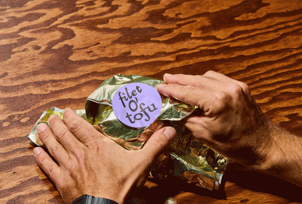 The Filet O’Tofu sandwich is finished with herbs, mayonnaise, American cheese, and the Thai flavoring nam prik noom.